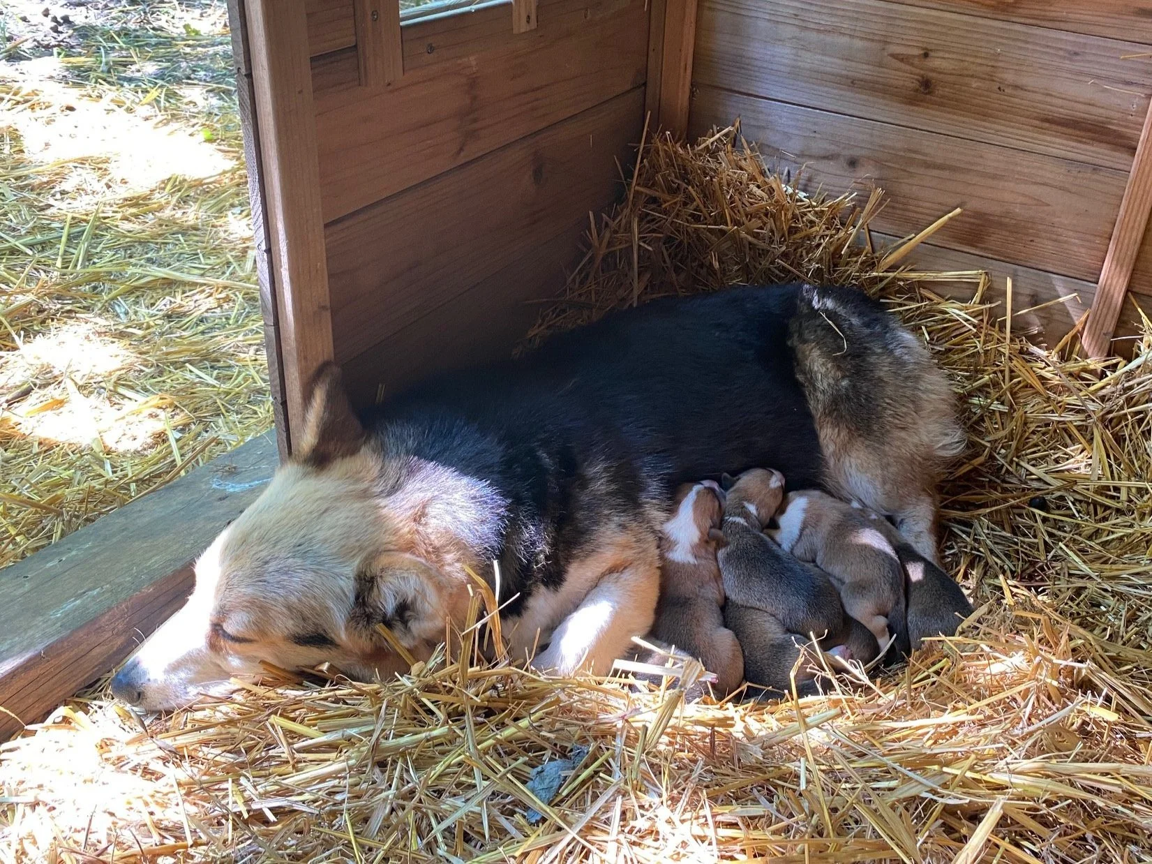 Ranger's Candi is 75% Pembroke Welsh Corgi and 25% miniature Australian shepherd. She is intelligent, loyal, loves to have a job to do and is a fierce protector of her puppies. She has excellent health and genetic screening results. Her favorite breakfast is a raw chicken leg.